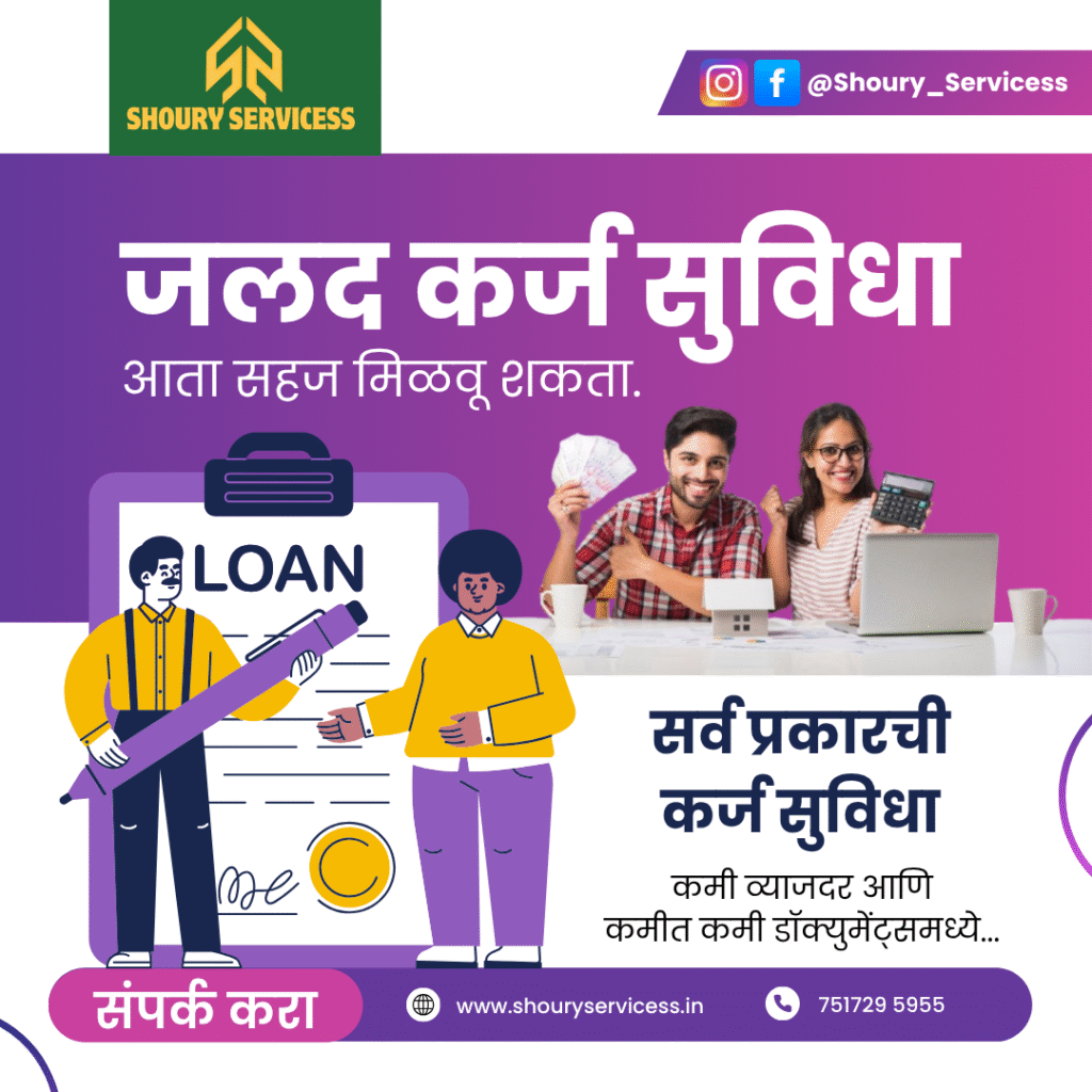 बेस्ट आणि फास्ट प्रोसेस कर्ज मिळवा 👉 होम लोन, कार लोन, मॉर्गेज लोन, प्रोजेक्ट लोन, ऍग्री लोन, पर्सनल लोन, डेअरी लोन, बिझनेस लोन, कमर्शियल प्रॉपर्टी लोन, CC & OD, Take over & Top Up, Loan for professional.
